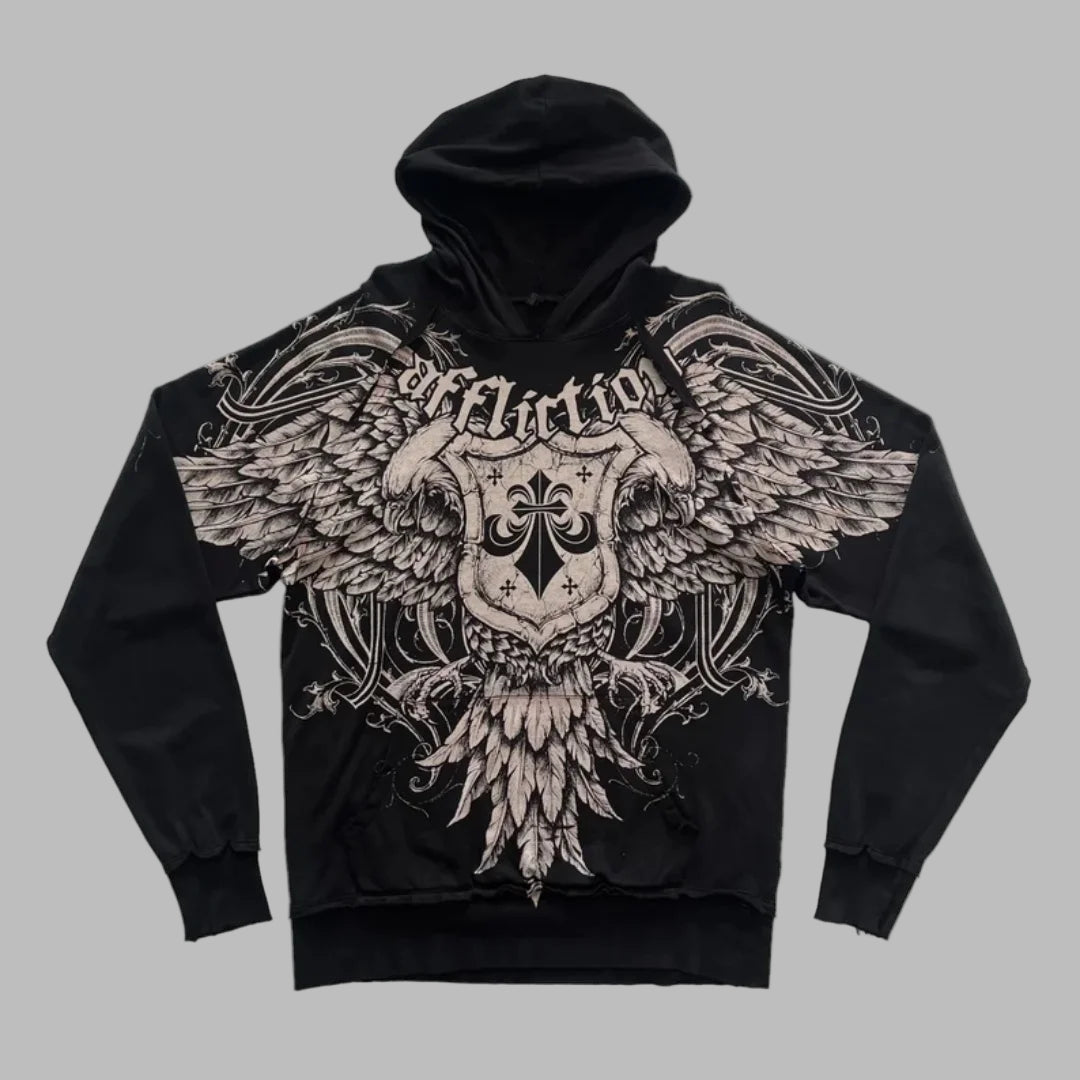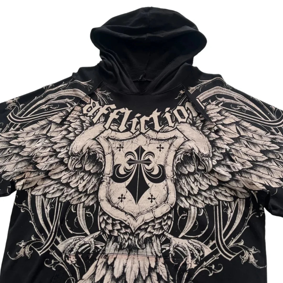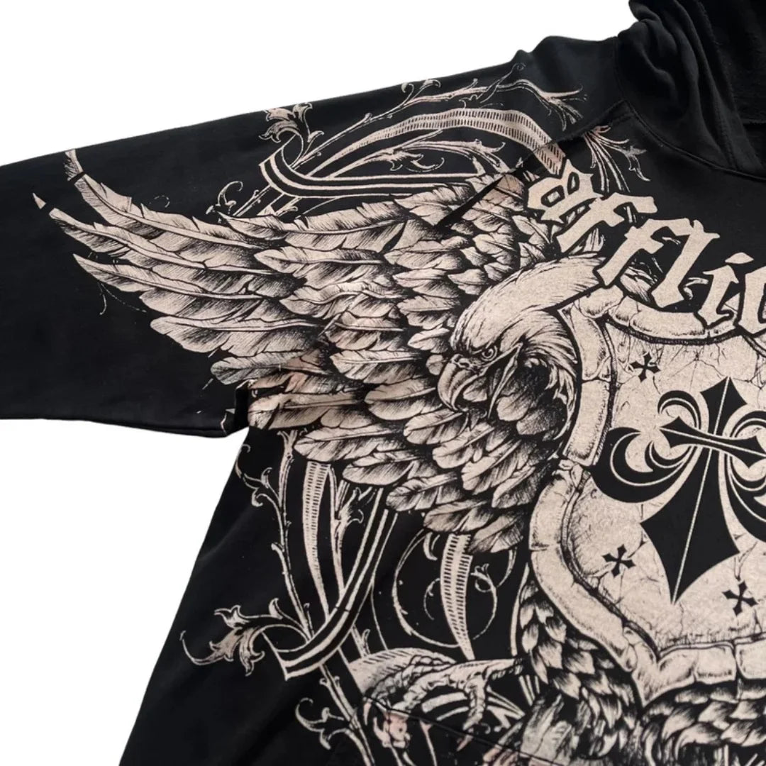 Affliction musta rock-huppari kotka- ja siipikuvioinnilla