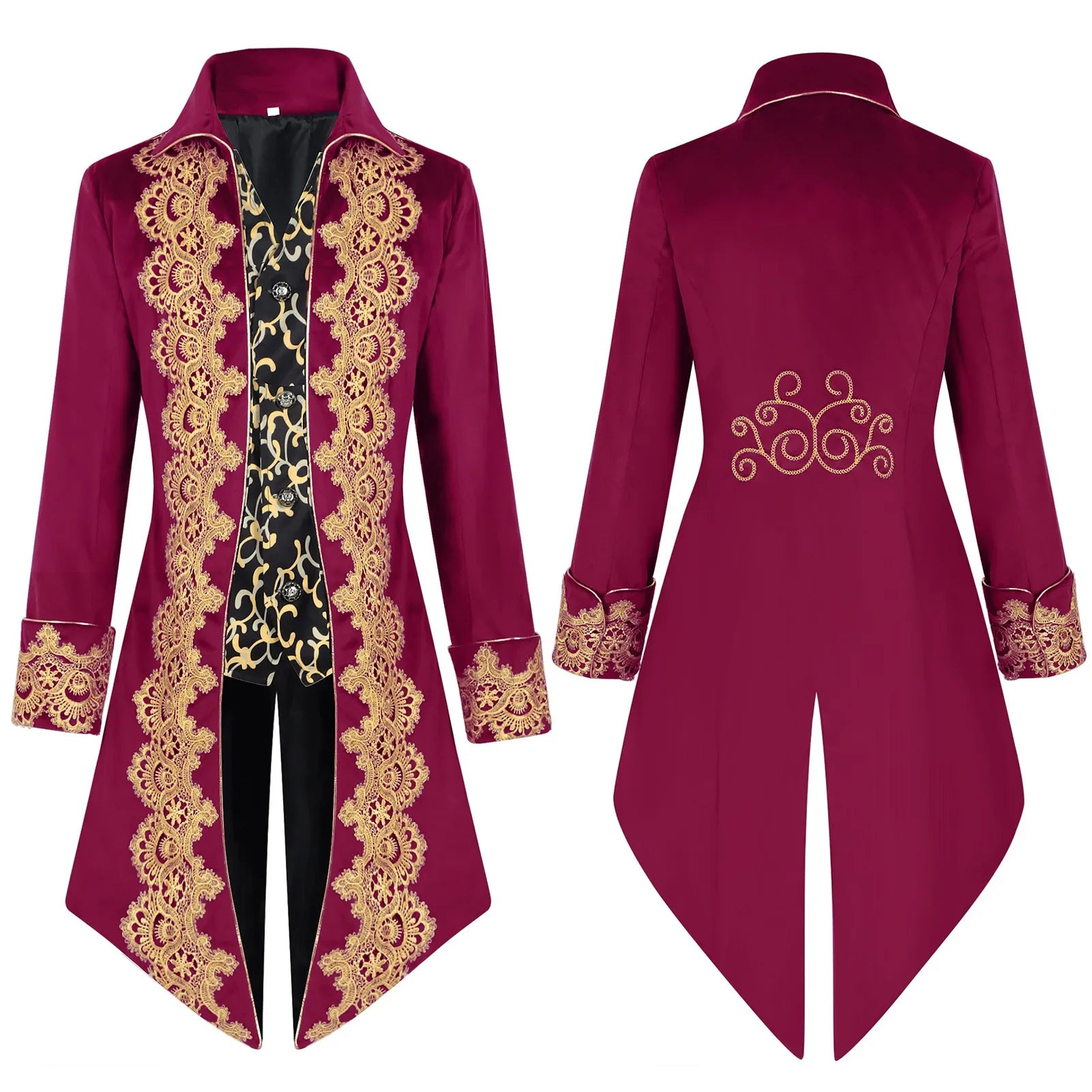 Barokkityylinen goottibleiseri kultaisella pitsillä miehille, punainen