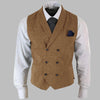Beige steampunk-kaksirivinen liivi tyylikkäillä yksityiskohdilla