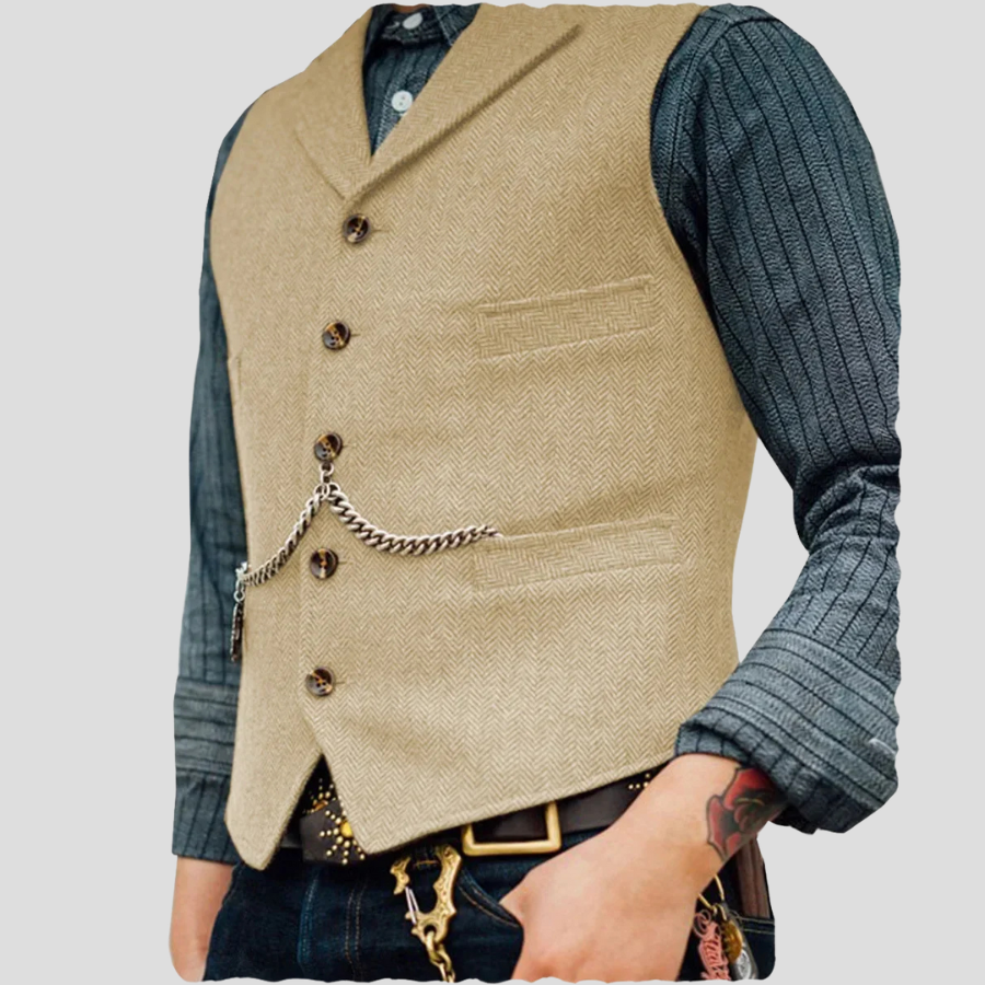 Beige steampunk-liivi taskuketjulla, kalanruotokuvio