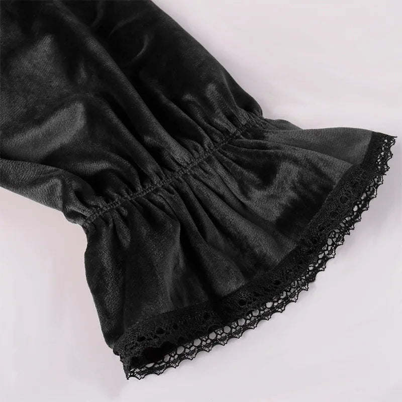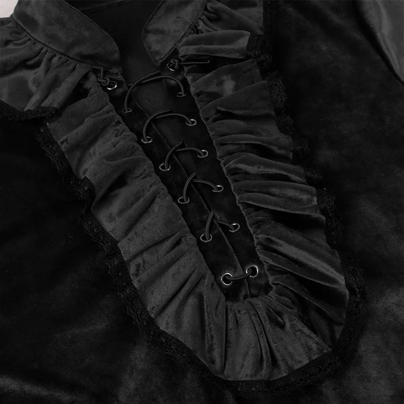 Elegantti musta Metal-paita röyhelökauluksella ja nyörityksellä