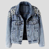Farkkutakki helmikoristeisilla olkapäillä