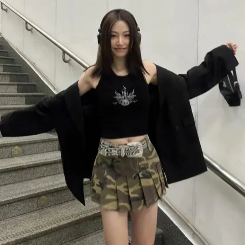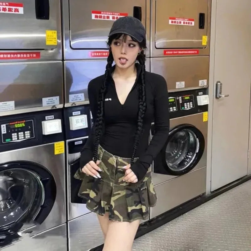Gotycki maastokuvioitu minihame – vaihtoehtoinen laskostettu hame