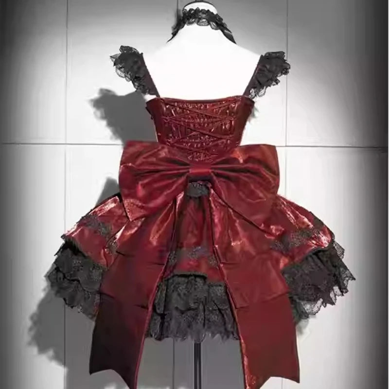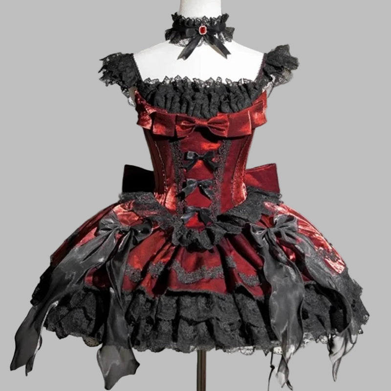 Gotycki punk Lolita -mekko, punainen ja musta pitsi
