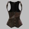 Gotycki steampunk-korsetti ruskeamustaraitainen nahkayksityiskohdilla