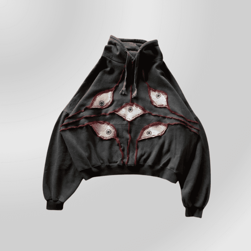 Grunge-tyylinen vaihtoehtoinen huppari, silmäkuvio