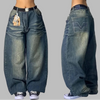 Grunge baggy rock-farkut vyöllä, sininen, XXL