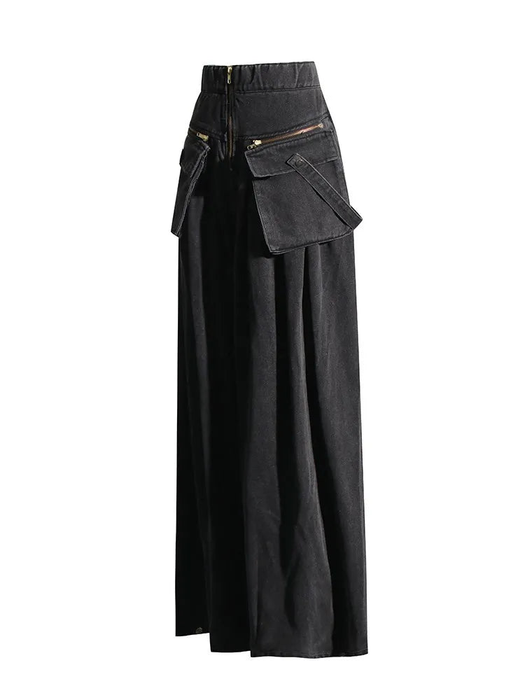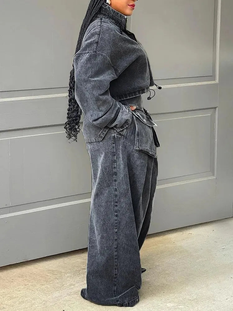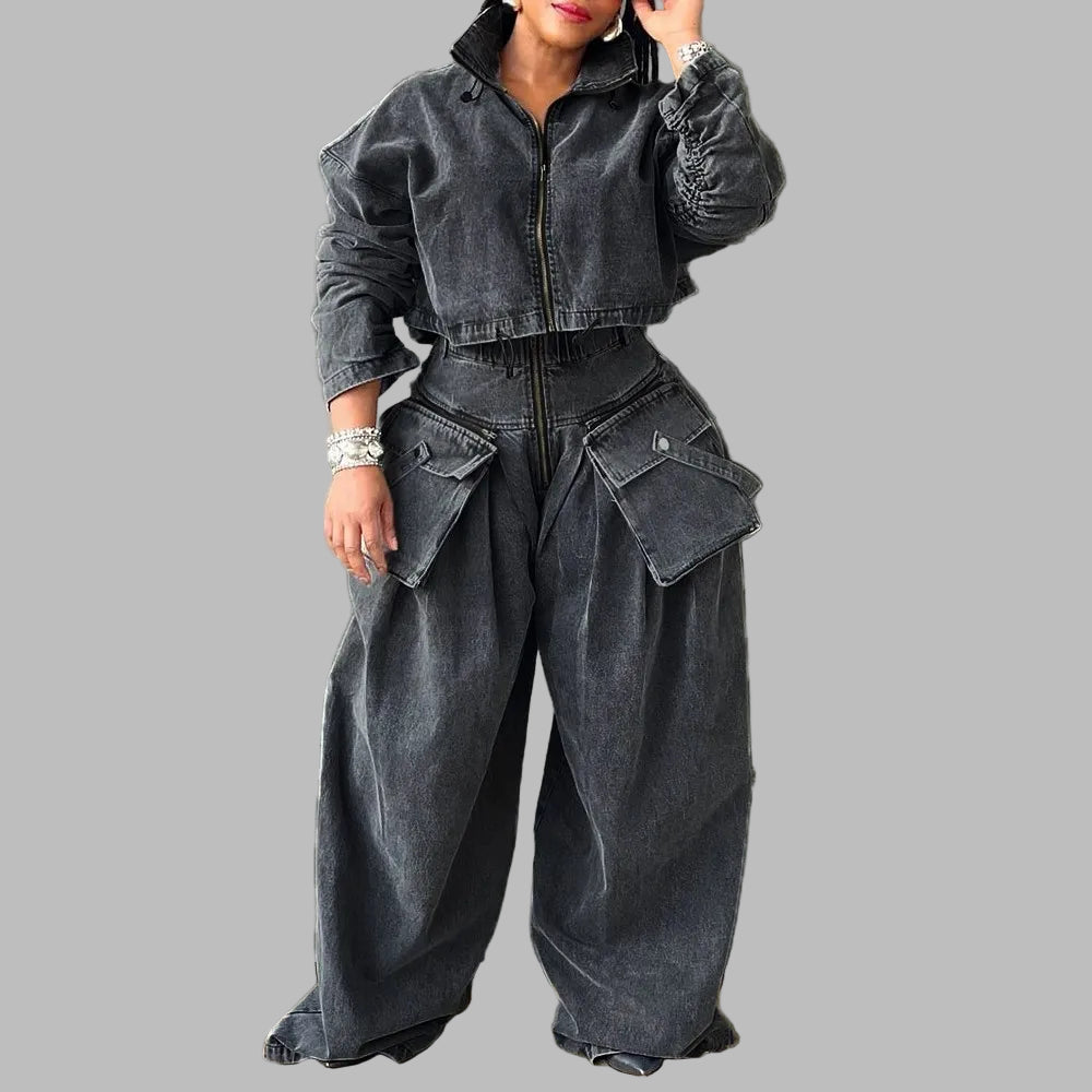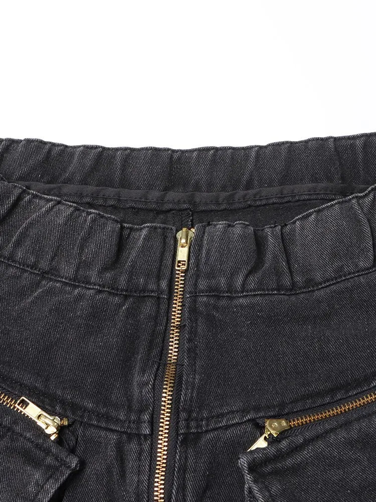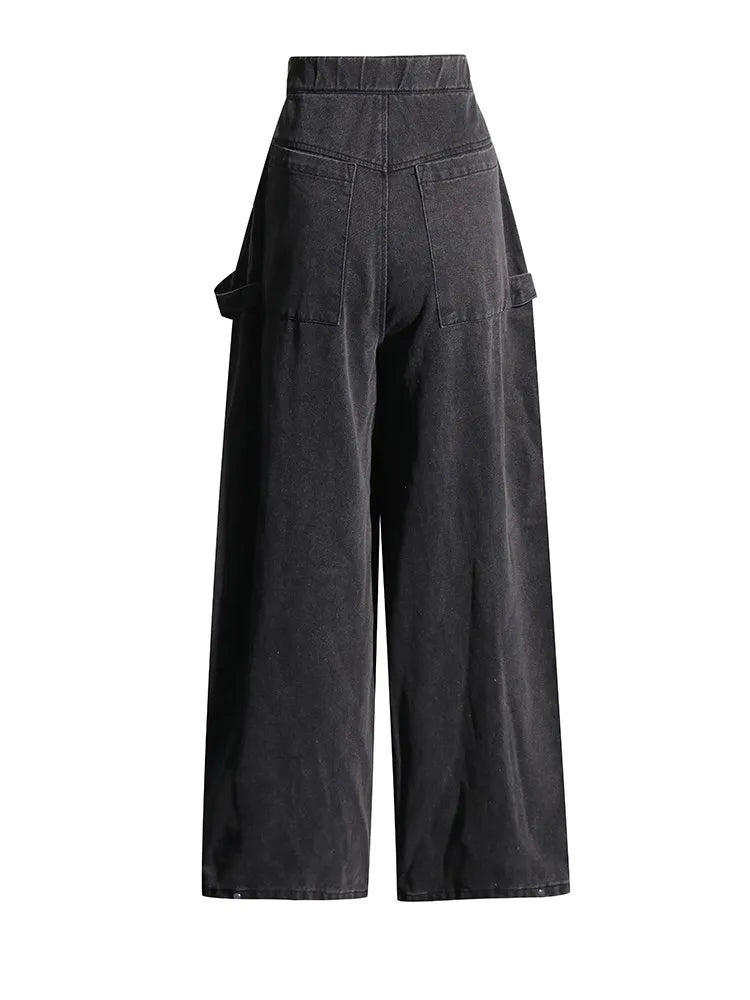 Harmaa punk-tyylinen farkkuhaalarI cargo-taskuilla