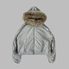 Harmaa rock-huppari turkissomisteisella hupulla ja piikkikoristeilla