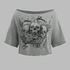 Harmaa rock-tyylinen crop top kallo- ja ruusukuviolla