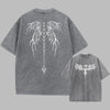 Harmaa vintage grunge -tyylinen metallibändi‑T-paita enkelinsiivillä