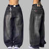 Harmaat oversize-grungefarkut ketjuilla, vintage, kulutetut