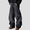 Harmaat oversize rock punk -farkut liekkikuvioinnilla, vintage grunge -tyyli