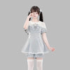 Jirai Kei lyhyt harmaa mekko valkoisella kauluksella ja röyhelöillä