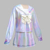 Jirai Kei valkoinen holografinen sailor-setti rusetilla