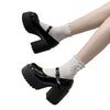 Kiiltävät mustat Mary Jane -platform-kengät remmillä, metallityyli