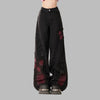 Leveät revityt gotiikka‑grunge‑punk‑farkut punaisilla yksityiskohdilla