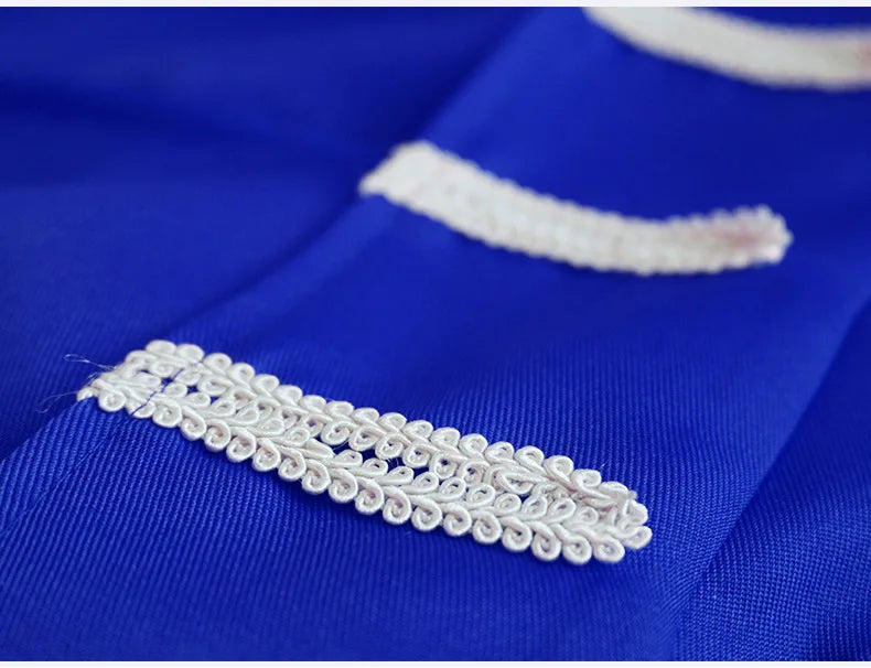 • Väri: sininen, jossa valkoiset koristeelliset nyörit