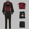 Miesten steampunk-asu, viininpunainen ja musta, pitsillä ja kultaisilla yksityiskohdilla