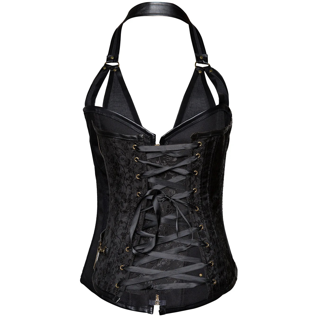 Musta goottityylinen punk-korsetti ketjuilla ja nahkayksityiskohdilla 6XL