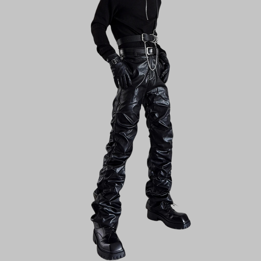 Musta goottityylinen tekonahkahousu ketjuilla ja vyöllä
