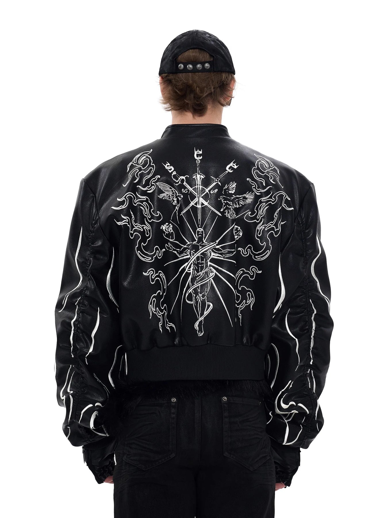 Musta goth metal -tyylinen bomber-takki, jossa enkelitaivas-brodeeraus