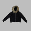 Musta grunge-tyylinen bomber-takki tekoturkishupulla