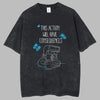Musta grunge‑tyylinen T‑paita kameralla ja vintage‑perhoskuviolla