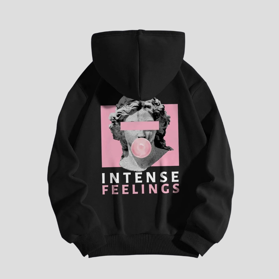 Musta Intense Feelings Rock -huppari graafisella printillä