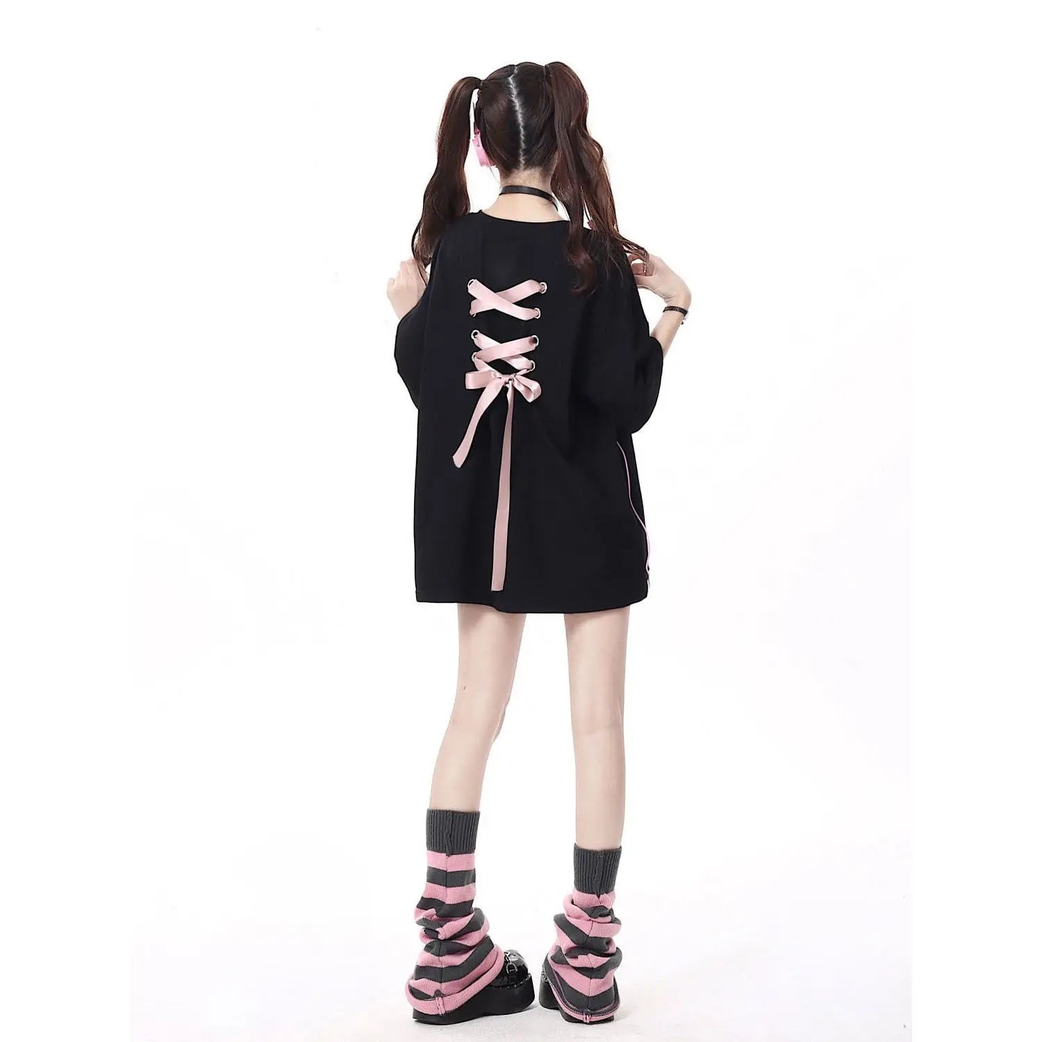 Musta Jirai Kei ‑huppari, selän nyöritys ja vaaleanpunainen nauha