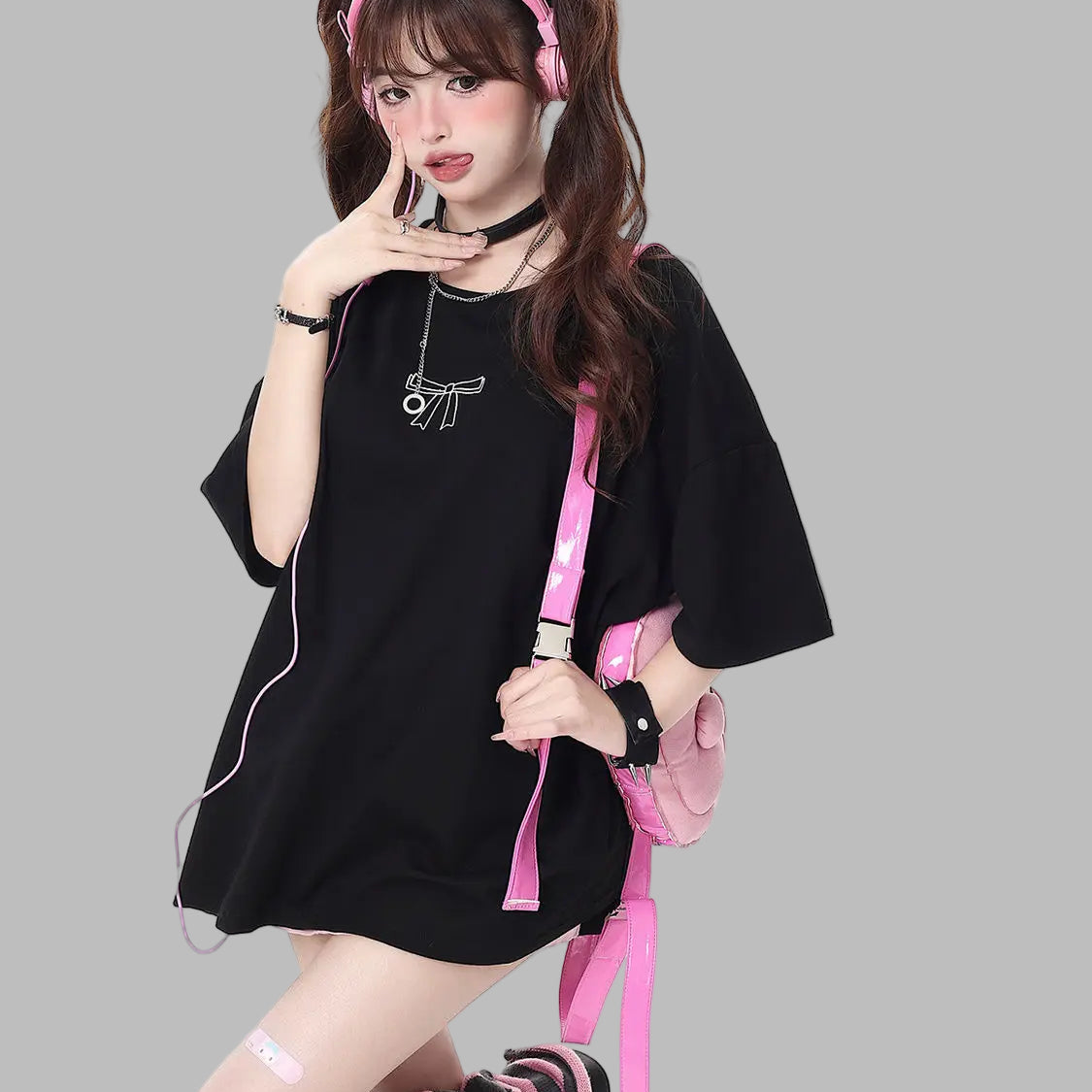 Musta Jirai Kei ‑huppari, selkänyöritys ja vaaleanpunainen nauha