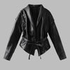Musta nahkainen punk goth rock -takki nyörityksillä, koko XXL