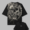 Mustapohjainen oversize-metallipaita, kallo- ja ruusukuvio, XXL