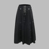 Musta pitkä epäsymmetrinen goottihame korsetilla ja röyhelöillä 3XL