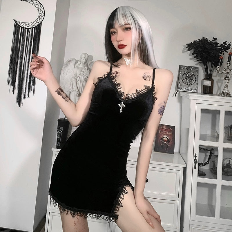 • Koristeet: mustat pitsit, jotka korostavat vaatetta, metallinen risti