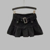 Musta punk-minihame vyöllä ja metallisilla laskoksilla