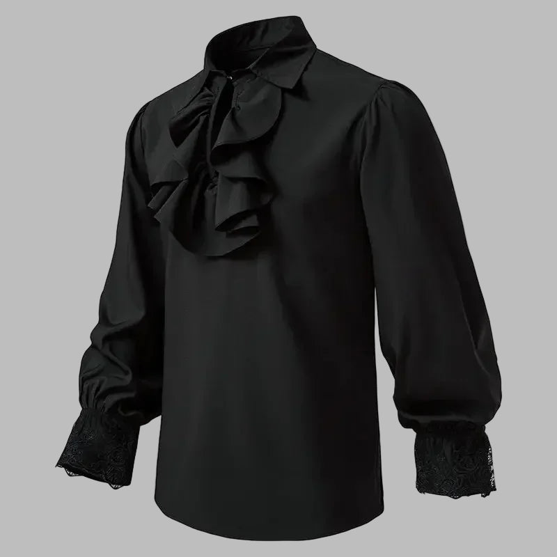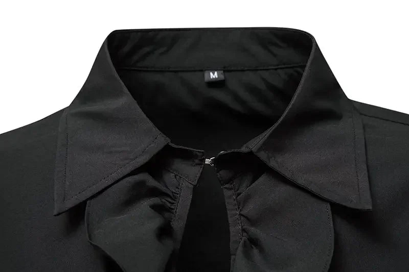 Musta rock-paita pitsimanseteilla ja röyhelökauluksella