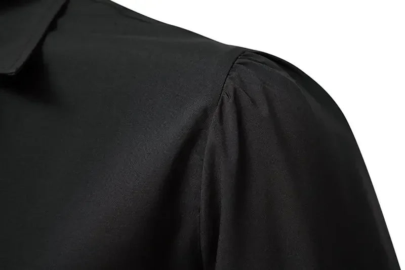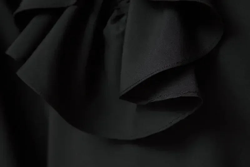 Musta rock-paita pitsimanseteilla ja röyhelökauluksella Näytä vaihtoehdot