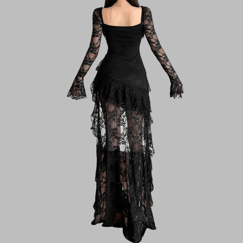 Musta rock-tyylinen pitsimekko epäsymmetrisellä helmalla