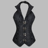 Musta steampunk- ja goottikorsetti, korkea kaulus ja metallisoljet Näytä vaihtoehdot