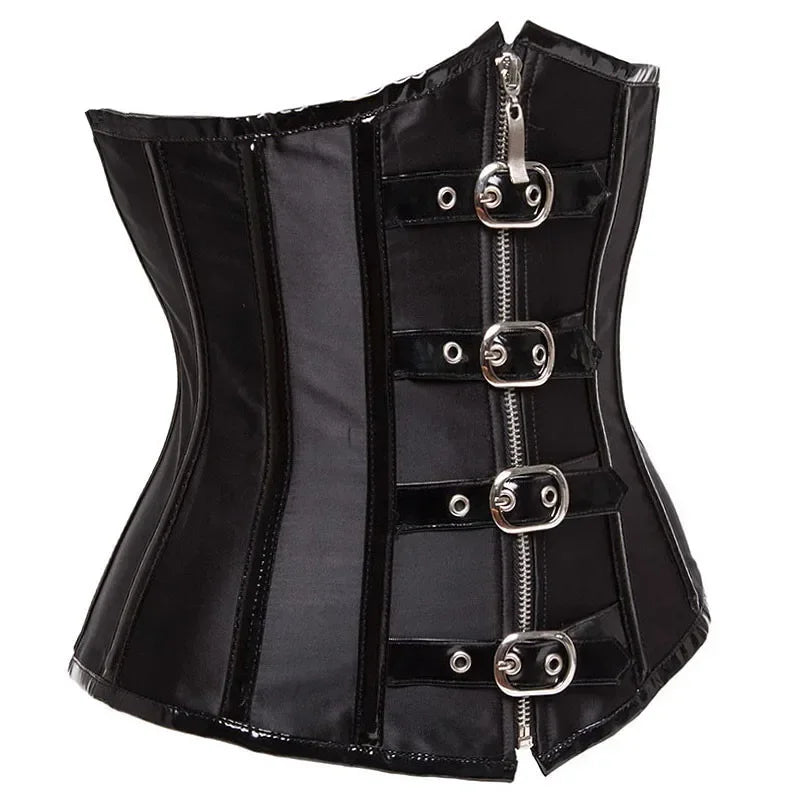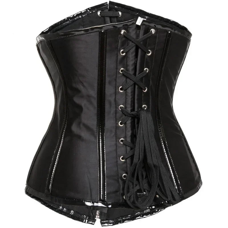 Musta steampunk-korsetti metallisoljilla – korkea vyötärö