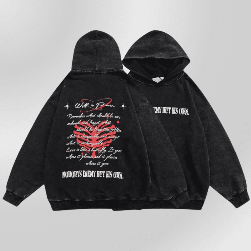 Musta vaihtoehtoinen grunge-huppari, jossa Letter-printti