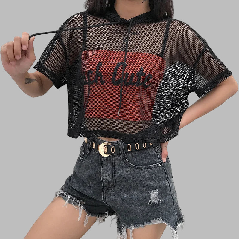 Musta verkkohuppuinen punk‑T-paita