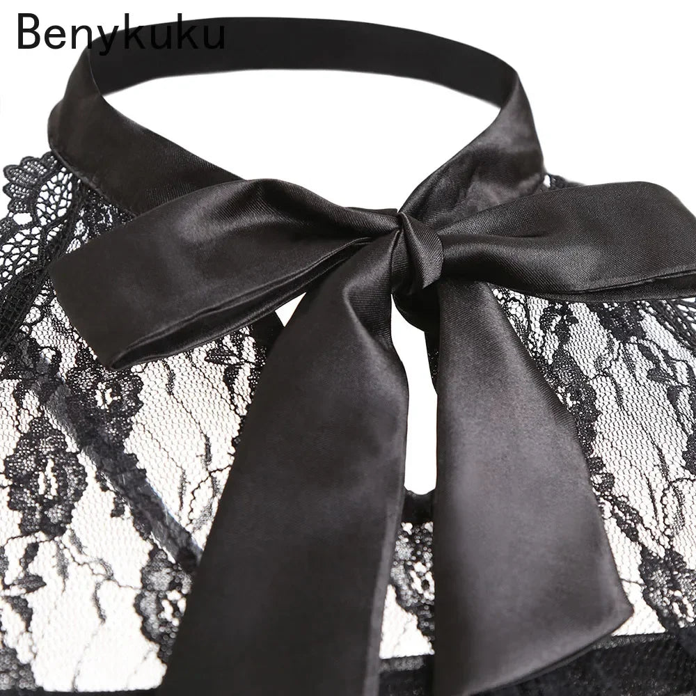 Musta viktoriaaninen hihaton pitsi- ja tyllimekko XXL