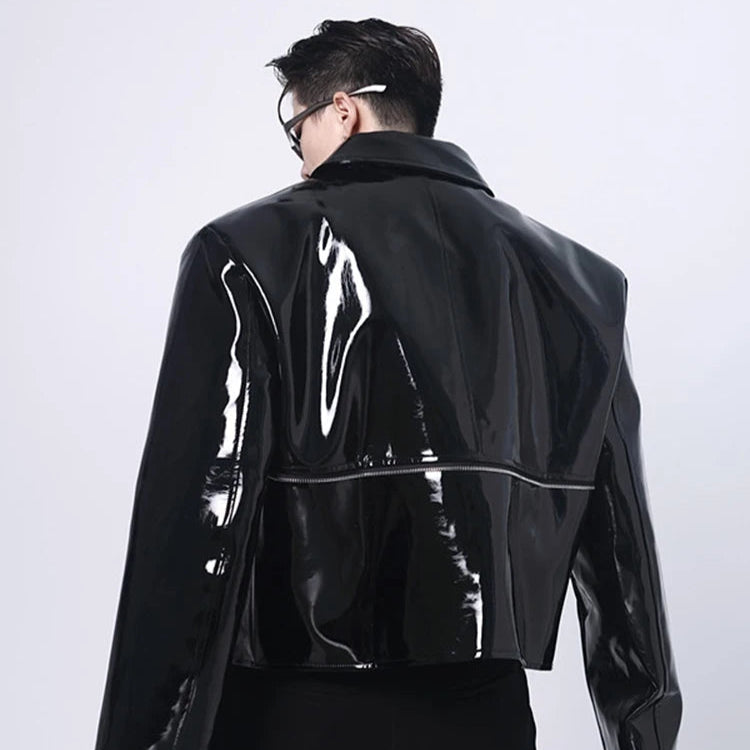 Unisex musta kiiltävä cyberpunk-tyylinen takki