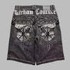 Mustat grunge-tyyliset Metal-farkkushortsit risteillä ja miekoilla