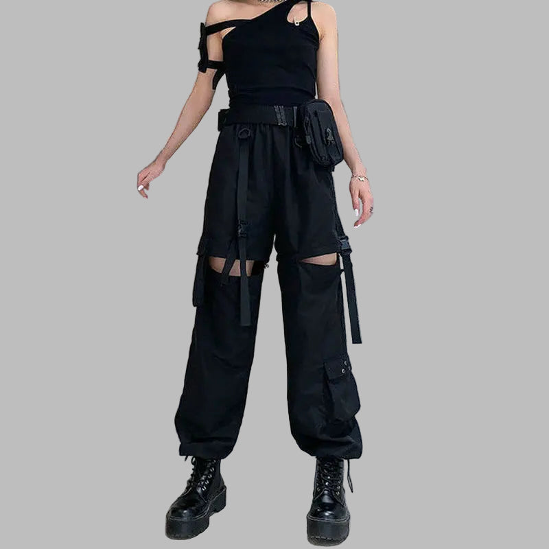 Mustat punk rock -henkiset goottihousut polvileikkauksilla
