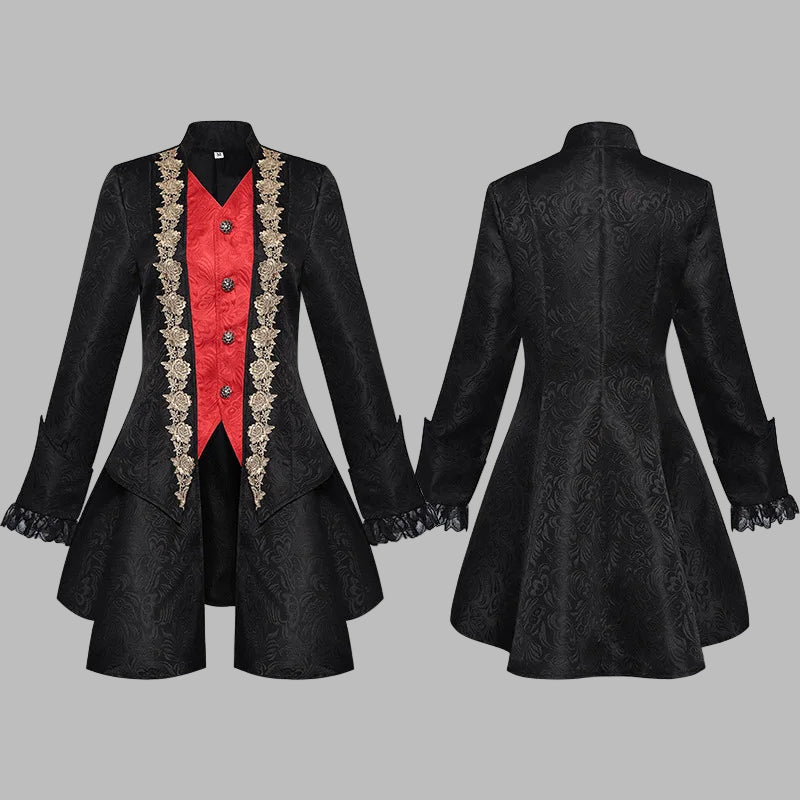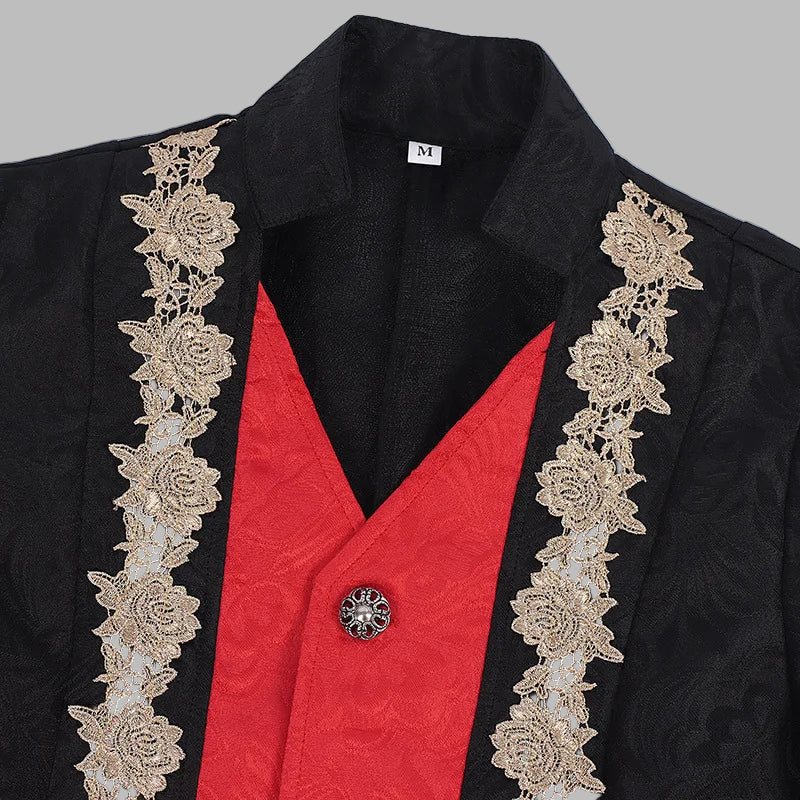 Naisten goottityylinen musta takki punaisella paneelilla ja pitsikoristeilla Näytä vaihtoehdot