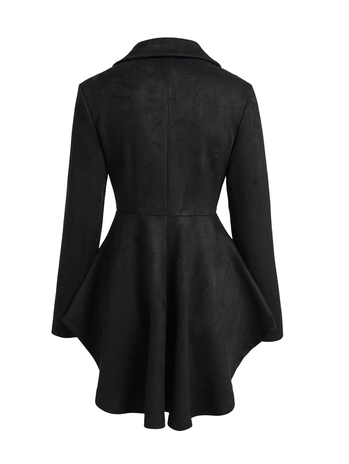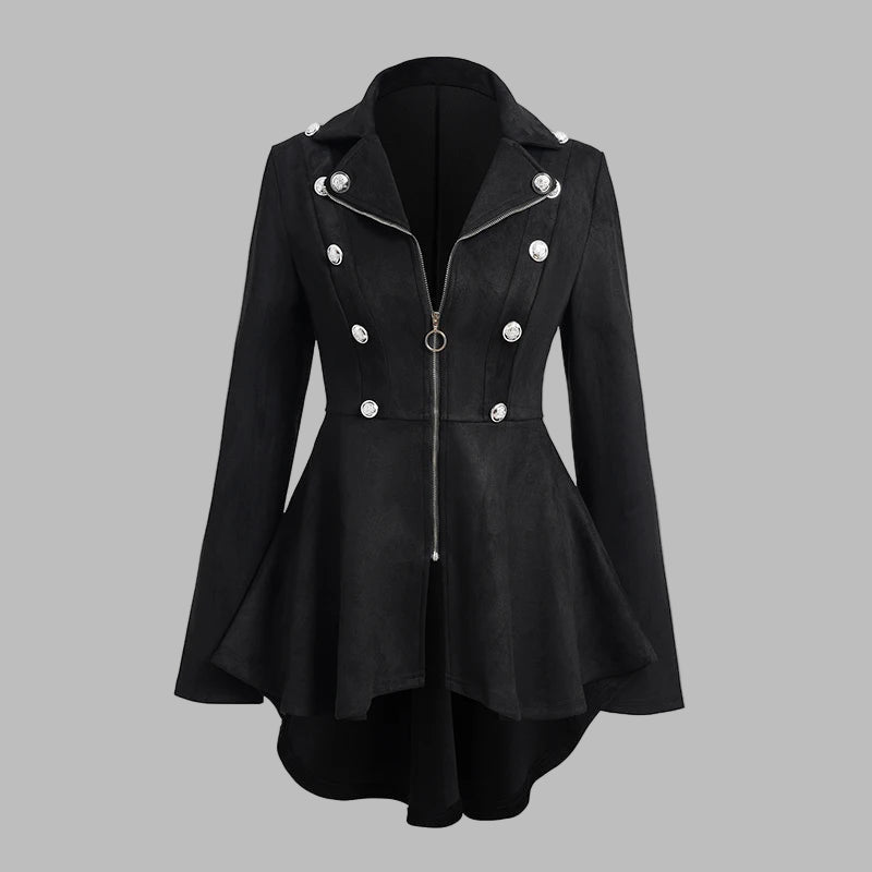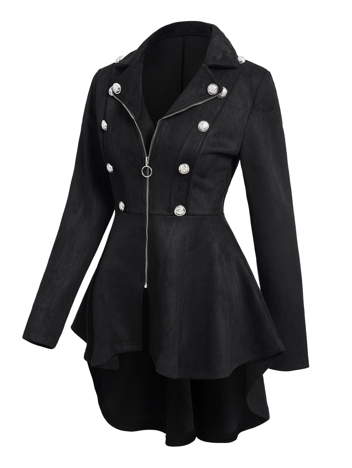 Naisten musta levenevä goottitakki, napit ja vetoketju