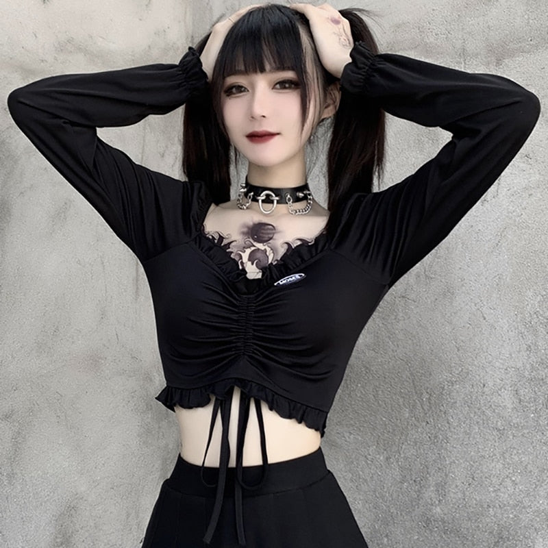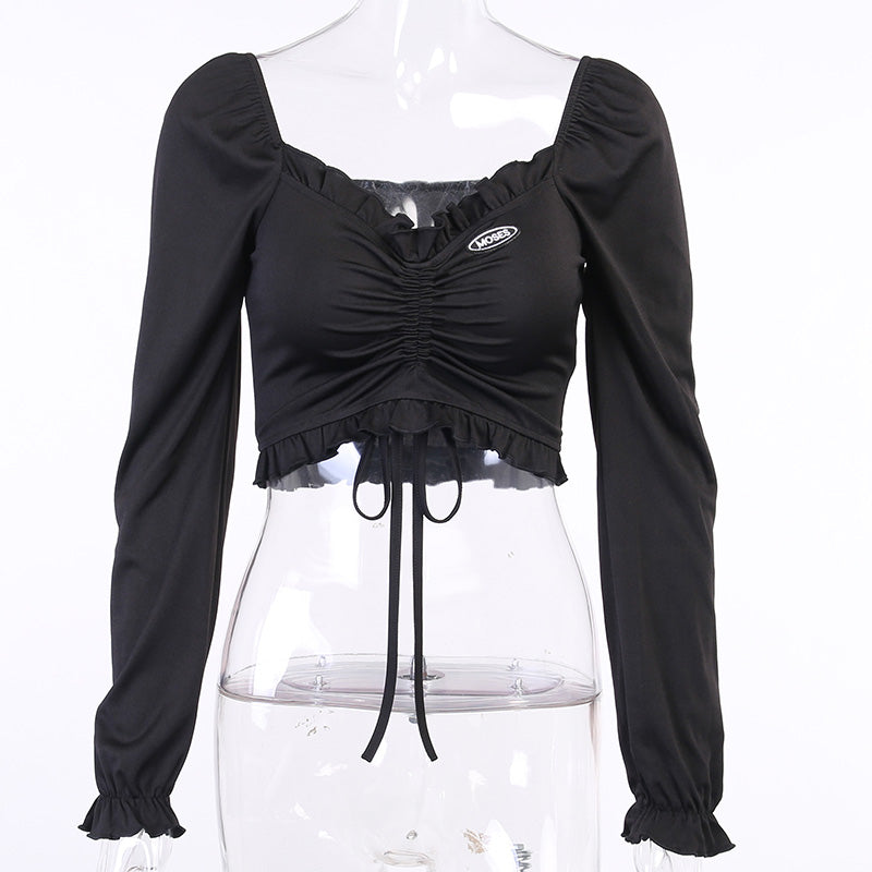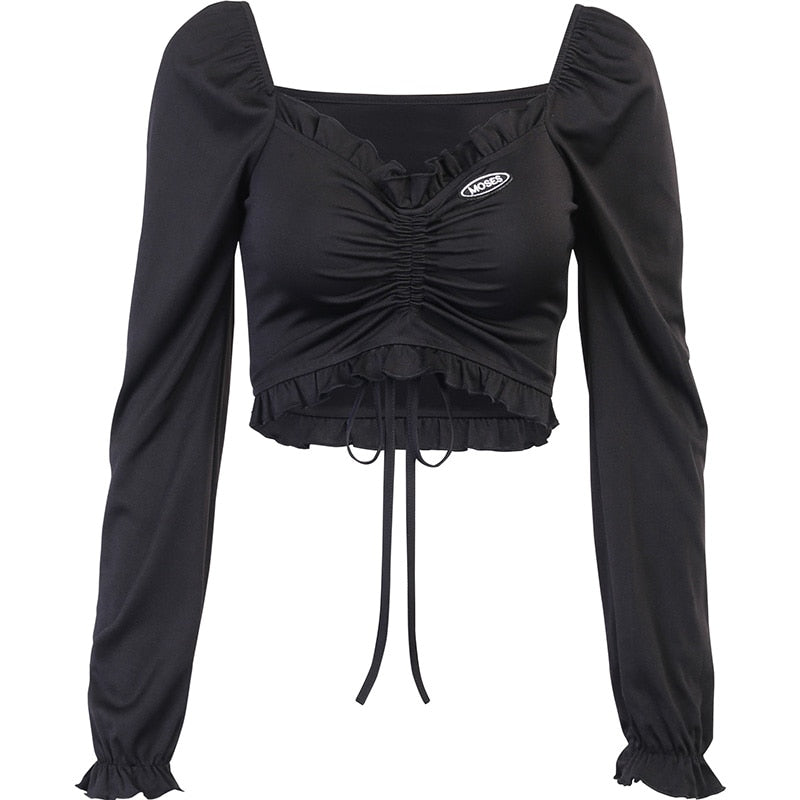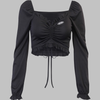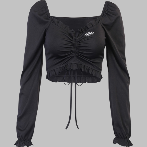• Ominaisuudet: Pitkät hihat, Seksikäs, Nauhoitukset, Lyhyt toppi, Rypytykset